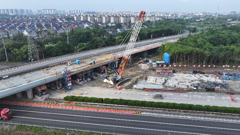 目前,滬武高速改擴建太倉境內(nèi)各標段施工有序推進。圖為...